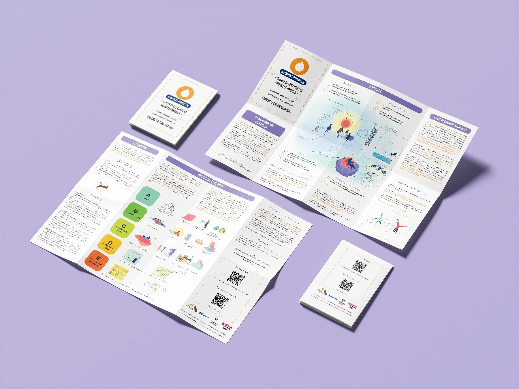 Illustrations and graphic design for the presentation leaflet of the project “Slowheating”. Format A3 folded in A6.